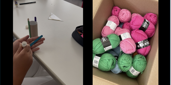Dafür basteln sie Stricklieseln aus alten Toilettenrollen und Eisstäbchen und verwend