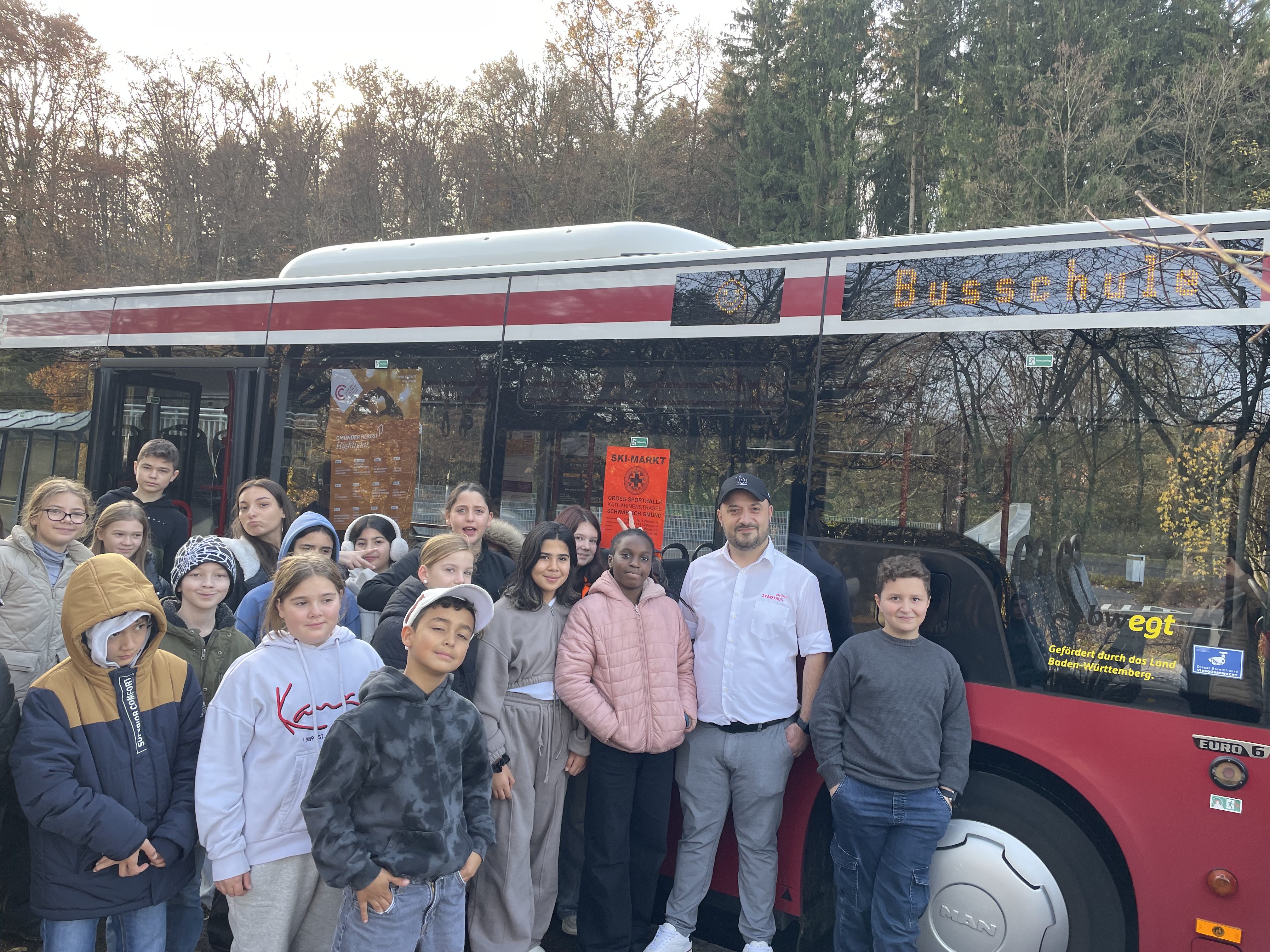 Auch in diesem Schuljahr war das traditionelle Bussicherheitstraining wieder fester Bestandteil in allen Klassen 5. Nach einer interessanten Einführung rund um das Thema "Sicher unterwegs mit dem Bus" durch Herrn Dalbudak (Polizei) ging es weiter ins Innere der Busschule. Dort wurden durch Fahrdienstleiter Kurtaj (Stadtbus Gmünd) weitere wissenswerte Inhalte und Geschichten rund um den alltäglichen Busbetrieb vermittelt. Zum Schluss durften die Lernenden noch bei einer arrangierten Vollbremsung die auftretenden Fliehkräfte am eigenen Leib erfahren, bevor sie voll von Eindrücken und fit für den Busalltag wieder von der Busschule in die ASR wechselten.