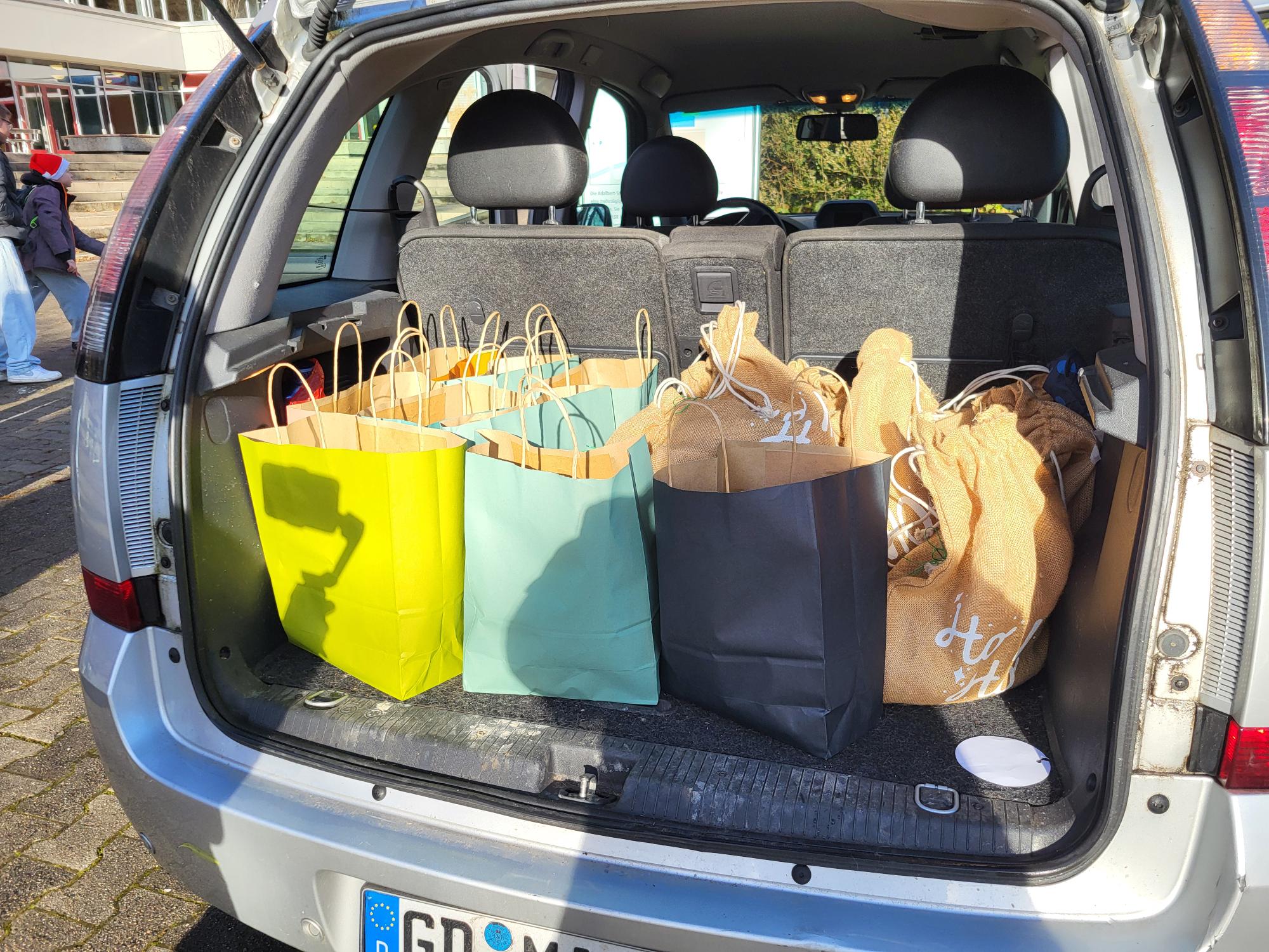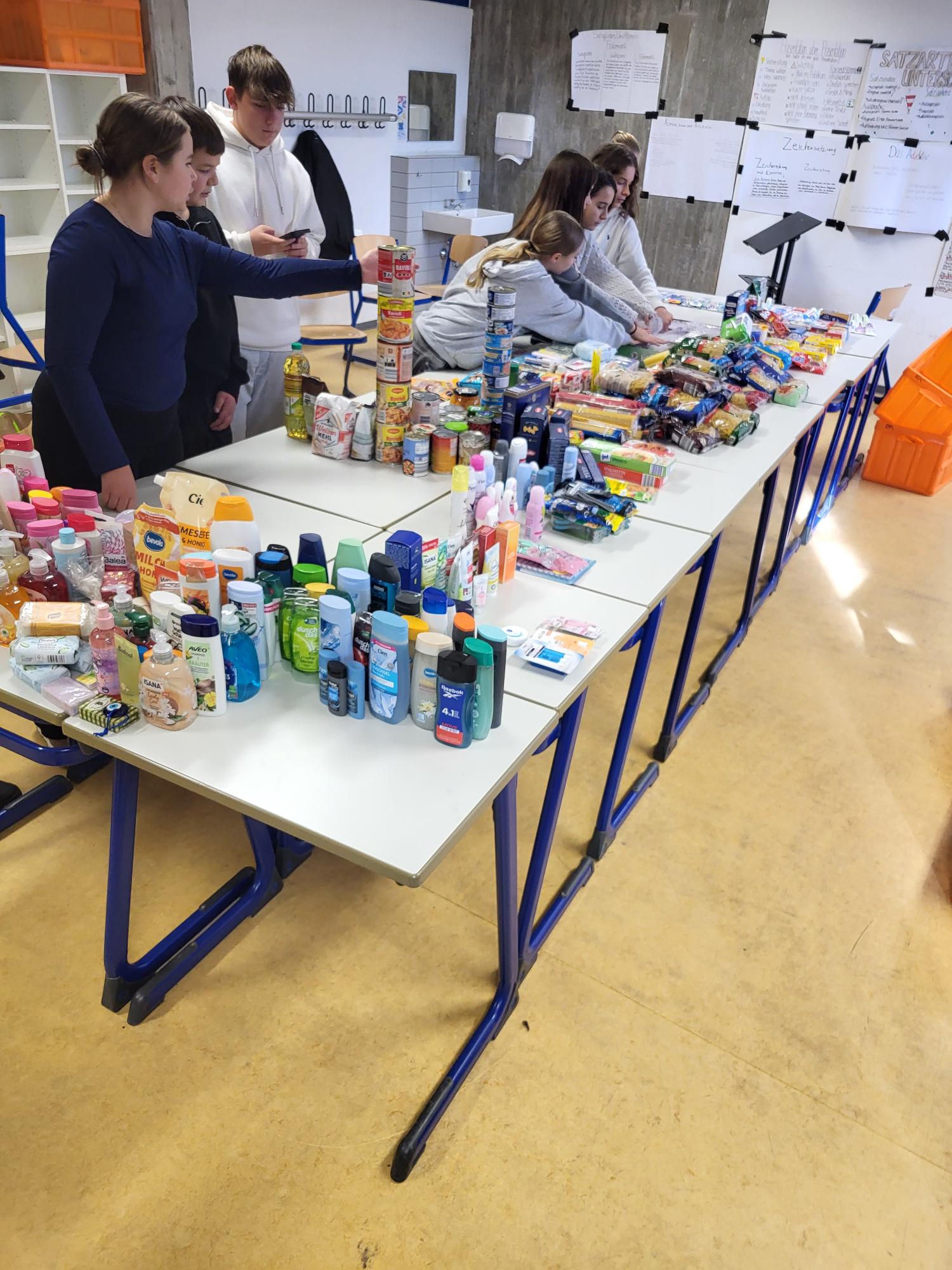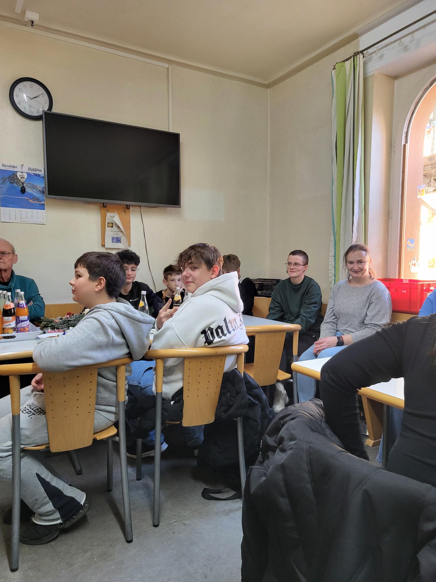 Spendenübergabe des Schulseelsorgeprojekts "Damit wohnungslos nicht hoffnungslos ist "im Obdachlosenwohnheim St.Elisabeth der Caritas in Schwäbisch Gmünd.Die Schülerinnen und Schüler der 7c und der anderen 7er-Klassen haben gemeinsam mit ihren Lehrerinnen Frau Rieger und Frau Volkmann sowie den Schulsoziarbeiterinnen Frau Winkler und Frau Kostrowski 60 Geschenktüten der Schulsammelaktion sowie 1070€ des Spendenerlöses vom Adventskonzert der ASR übergeben.